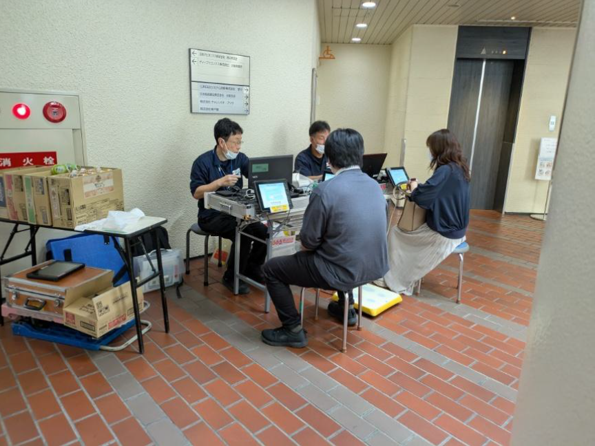 コメダでは、毎年春、地域を巡回する赤十字の献血バスに合わせて、社員が献血に参加しています。今年も大阪事務所の近くにバスが来て、社員が足を運びました。