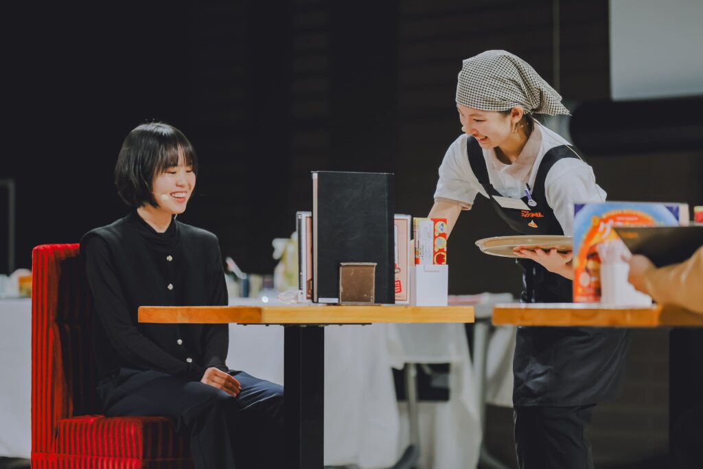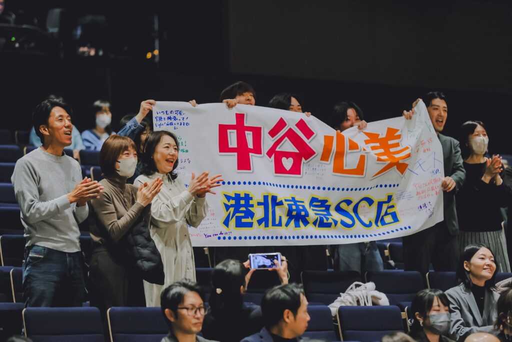全国約800店舗、約12,000名のエントリーから地区予選を勝ち抜いた9名がファイナリストとして集まりました。もちろん、フランチャイズ加盟店で日々お客様を迎えてきたスタッフです。観客席には、同じ店舗で働く仲間やオーナー様が応援に駆け付け、弾幕や拍手で声援を送ります。名前を呼ぶ声が飛び交い、会場全体が温かな空気に包まれていました。